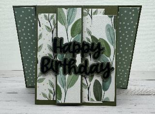 Leslie created a charming accordion gate fold using papers and stickers from the Carta Bella Gather At Home Collection Kit. This house- and home-themed kit is full of beautiful papers and embellishments, perfect for capturing moments with family and friends. While it looks intricate, the design is simple—a basic gate fold with a five-section accordion element that opens on each side. Leslie used coordinating patterned papers from the collection for the base and accordion, embellishing three of the five sections with stickers from the sheet and leaving the center section open for a personal signature.